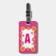 Joli design floral rose fuchsia et jaune avec monogramme. Ajoutez votre lettre initiale et les détails sur étiquette à bagages rose avec des fleurs.