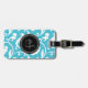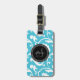 Étiquette À Bagage Monogramme floral blanc bleu girly élégant de