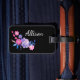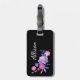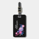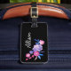 Étiquette À Bagage Monogramme floral noir rose violet jolie fille