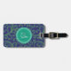Étiquette À Bagage Monogramme floral vert-bleu girly élégant de motif