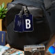 Modifiez facilement l'initiale du monogramme sur l'avant et le nom et l'adresse à l'arrière de l'étiquette de bagages bleu de la Marine.