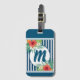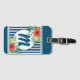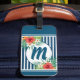 Étiquette À Bagage Monogramme moderne à rayures et fleurs bleues
