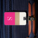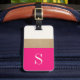 Moderne et chic, cette bagagerie présente des rayures roses chaudes et dorées audacieuses et un monogramme personnalisable. Ajoutez votre nom et votre adresse à l'arrière pour obtenir une étiquette de bagage vraiment personnalisée.