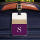 Étiquette À Bagage Monogramme moderne violet or rayé | Etiquettes à b
