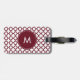 Étiquette À Bagage Monogramme Motif de quatrefoil bordeaux et blanc