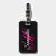 Étiquette À Bagage Monogramme noir blanc et rose chaud