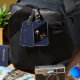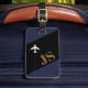 Arrière - plan bleu foncé et noir avec avion et initiales (monogramme). Une étiquette avec un nom est importante pour plusieurs raisons pratiques lors du voyage. Tout d'abord, il sert de moyen rapide et facile d'identifier vos bagages parmi la mer de sacs similaires dans les aéroports, les gares routières ou d'autres centres de transport. Cela peut vous faire gagner du temps et réduire le risque de prendre accidentellement le sac de quelqu'un d'autre ou de faire prendre le vôtre par quelqu'un d'autre. Deuxièmement, une étiquette de bagage avec votre nom fournit un lien d'information de contact crucial en coque votre sac se perd. Dans le malheureux cas où vos bagages sont déplacés pendant votre voyage, le fait d'avoir votre nom et vos coordonnées sur l'étiquette facilite grandement la réunion du personnel de la compagnie aérienne ou du transport avec vos effets personnels. Cette simple mesure augmente les chances d'un processus rapide et précis de récupération. En plus d'avantages pratiques, un bagage portant un nom ajoute également une couche de sécurité. En affichant clairement votre nom, vous dissuadez les voleurs potentiels ou ceux qui ont des sacs semblables de tenter de réclamer ou d'ouvrir vos bagages.