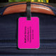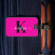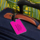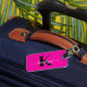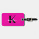 Cette étiquette simple et élégante de bagages rose chaud avec votre prénom dans une police de script tendance en blanc et votre première initiale dans une police casquette moderne en noir sur un côté et votre nom, adresse et numéro de téléphone sur l'autre serait fabuleux sur vos valises. C'est design, tendance et pourtant très classique.