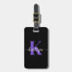 Cette étiquette simple et élégante de bagage noir avec votre prénom dans une police de script tendance en blanc et votre première initiale dans une police casquette moderne en violet d'un côté et votre nom, adresse et numéro de téléphone de l'autre serait fabuleux sur vos valises. C'est design, tendance et pourtant très classique.