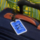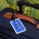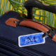 Balises de bagages personnalisées en bleu. L'art Abstrait dans l'arrière - plan. Modifiez l'initiale et le nom pour en faire une personnalisation. Idée cadeau.