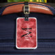 Balises de bagages personnalisées en rouge. L'art Abstrait dans l'arrière - plan. Modifiez l'initiale et le nom pour le personnaliser. Idée cadeau.