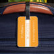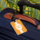 Une étiquette de bagage dans la couleur orange avec votre monogramme sur un bouclier ovale blanc avec une bande. Pour des raisons de sécurité, ne mettez jamais votre adresse complète visible sur un étiquette de bagage. C'est pourquoi vous trouvez sur les places à l'arrière pour votre nom, numéro de téléphone et adresse e-mail seulement.