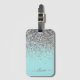 Étiquette À Bagage Monogramme Pailleté Girly Bleu Sarcelle Aqua Argen