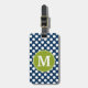 Étiquette À Bagage Monogramme personnalisé Pois bleu marine et vert c