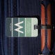Marque à bagages personnelle tendance avec de larges bandes dans des tons verts muets inspirés de la nature. Grand monogramme centré et nom associé. Une typographie épurée et minimaliste. Entièrement personnalisable. Idée cadeau idéal pour un passionné de voyage spécial ou vous-même. Idéal pour identifier vos bagages personnels de manière unique.