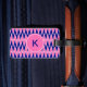 Motif en zigzag rose chaud et bleu marine monogrammé. Alternant des lignes de zigzag rose chaud et bleu marine.