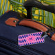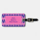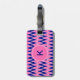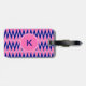 Étiquette À Bagage Monogramme rose chaud et marine Motif Zigzag bleu