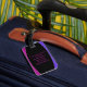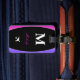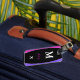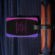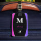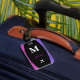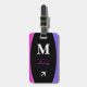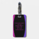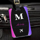 Balise de nom rose, violet et noir pour valise voyage. Icône blanche de l'avion et initiale du nom blanc. Customisez le nom, l'initiale et les coordonnées.