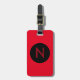 Cercle noir avec monogramme personnalisable. Couleur arrière - plan rouge visible et brillante.