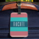 Marque à bagages rayés turquoise et bordeaux chic. Personnalisez la balise avec votre nom ou votre initiale. Le style de police et la couleur peuvent être customisés à votre style personnel.