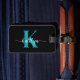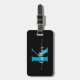 Cette étiquette simple et élégante de bagage noir avec votre prénom dans une police de script tendance en blanc et votre première initiale dans une police casquette moderne en turquoise d'un côté et votre nom, adresse et numéro de téléphone de l'autre serait fabuleux sur vos valises. C'est design, tendance et pourtant très classique.