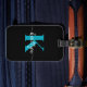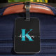 Cette étiquette simple et élégante de bagage noir avec votre prénom dans une police de script tendance en blanc et votre première initiale dans une police casquette moderne en turquoise d'un côté et une diapositive dans la carte pour votre nom, adresse et numéro de téléphone de l'autre serait fabuleux sur vos valises. C'est design, tendance et pourtant très classique.