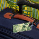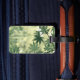 Marque à bagages personnalisée avec l'image estivale du soleil brillant à travers les feuilles d'érable vert avec une citation inspirante de John Muir "Dans chaque marche avec la nature on reçoit beaucoup plus qu'il ne cherche" à l'envers.