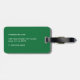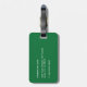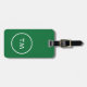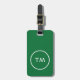 Élégante étiquette de bagage vert personnalisable avec cercle blanc et monogramme gras.