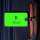 Les données initiales et aussi personnelles monogrammes comme nom, adresse, numéro de téléphone et e-mail que vous pouvez modifier. Conçu avec un arrière - plan de couleur vert néon solide attrayant, vous pouvez changer de couleur si vous le souhaitez. Une idée-cadeau de voyage pour un Cool.