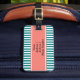 Étiquette À Bagage Monogrammes Turquoises, blancs et coraux roses ray