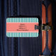 Motif rayé turquoise et blanc alternant. Le motif est traversé par une bande horizontale rose corail où vous pouvez ajouter votre texte.
