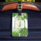 Cette étiquette à bagages présente du feuillage tropical vert et de petites fleurs blanches sur un arrière - plan blanc. Personnalisez-le en ajoutant votre nom et votre initiale au cadre central.
