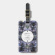 A bold and sophisticated Luggage Tag featuring dramatic dusty blue and grey floral illustrations against a stark black background. The crisp white typography and classic layout set an elegant, moody tone. Perfect for a formal evening or a sophisticated wedding.