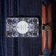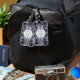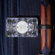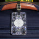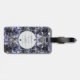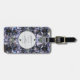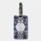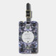 A bold and sophisticated Luggage Tag featuring dramatic dusty blue and grey floral illustrations against a stark black background. The crisp white typography and classic layout set an elegant, moody tone. Perfect for a formal evening or a sophisticated wedding.
