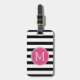 Étiquette À Bagage Motif à rayures noir et blanc Monogramme rose chau