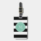 Étiquette À Bagage Motif à rayures noires, Monogramme vert à menthe