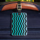 Étiquette À Bagage Motif à rayures turquoise ondulées