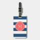 Étiquette À Bagage Motif blanc de rayures de bleu marine, monogramme