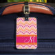 Étiquette À Bagage Motif chaud rose et orange avec Monogram