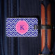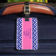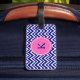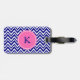 Étiquette À Bagage Motif Chevron bleu Monogram Navy avec rose chaud