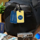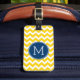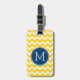 Étiquette À Bagage Motif Chevron jaune et bleu avec Monogramme