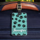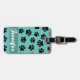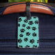 Empreintes de pattes de chien noir sur arrière - plan turquoise. Motif de style dessin pour amoureux de les chiens. Balises de bagages personnalisées. Modifiez le nom pour personnaliser cette balise. Idée cadeau.
