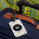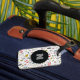 Un motif moderne et unique de monogramme inspiré de la fête à la piscine de Las Vegas avec des chaînes, des dents en or, des diamants, des jetons de poker, des lunettes de soleil, des bikinis et des martinis apporte l'ambiance de fête à vos bagages pour le week-end entre filles, l'enterrement de vie de garçon ou de jeune fille.