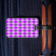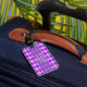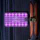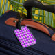 Belle étiquette de bagages motif Jacquard violet. Différentes nuances de violet : violet électrique, lavande foncée et lavande brillante riche.