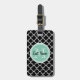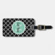 Étiquette À Bagage Motif noir de Quatrefoil, monogramme vert en bon