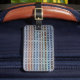 Bleu et bronze étiquette à bagages dans un motif de papier collé. Customisez-le avec votre nom et vos coordonnées.