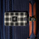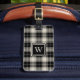 Marquez vos sacs avec une étiquette classique en plastique tartan noir et blanc cassé qui a votre monogramme sur le devant et vos coordonnées sur le dos. Ce design a une allure d'élégance rustique avec un charme professionnel. C'est un excellent choix pour les voyageurs fréquents.