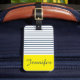 Motif moderne rayé blanc, bleu et jaune avec nom personnalisé