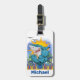 Un requin amusant étiquette à bagages personnalisés, avec un requin flexion muscles avec des amis de la vie marine et le soleil aussi! Merveilleux pour quelqu'un qui aime les requins travaille ou a des muscles! Personnalisez l'avant avec un nom et l'arrière avec les coordonnées ! Ce design est présenté sur beaucoup d'autres cadeaux, stationnaire et décoration maison dans notre boutique!