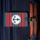 Design nautique avec décoration d'ancre en forme ronde avec étoiles sur rouge, bleu et blanc rayé arrière - plan